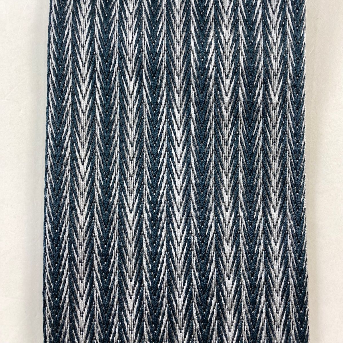 角帯 秀品 証紙 本場筑前博多織 縞 幾何学模様 青灰色 正絹