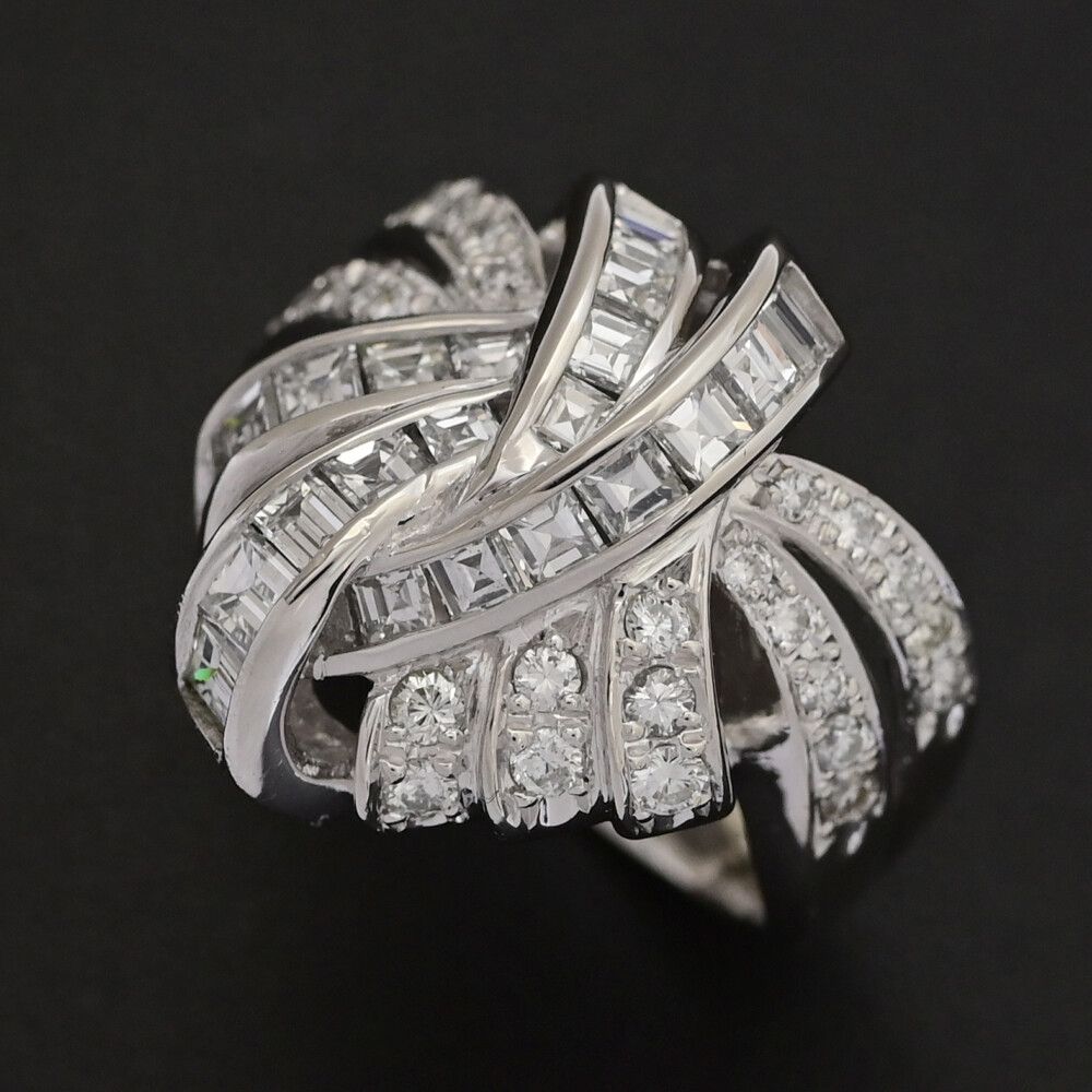 1.72 ct リボンモチーフ・ダイヤモンドリング・指輪 Pt 900-10.1 g 12号 52 プラチナ 翌日配送可 ♀ N レディース 593907