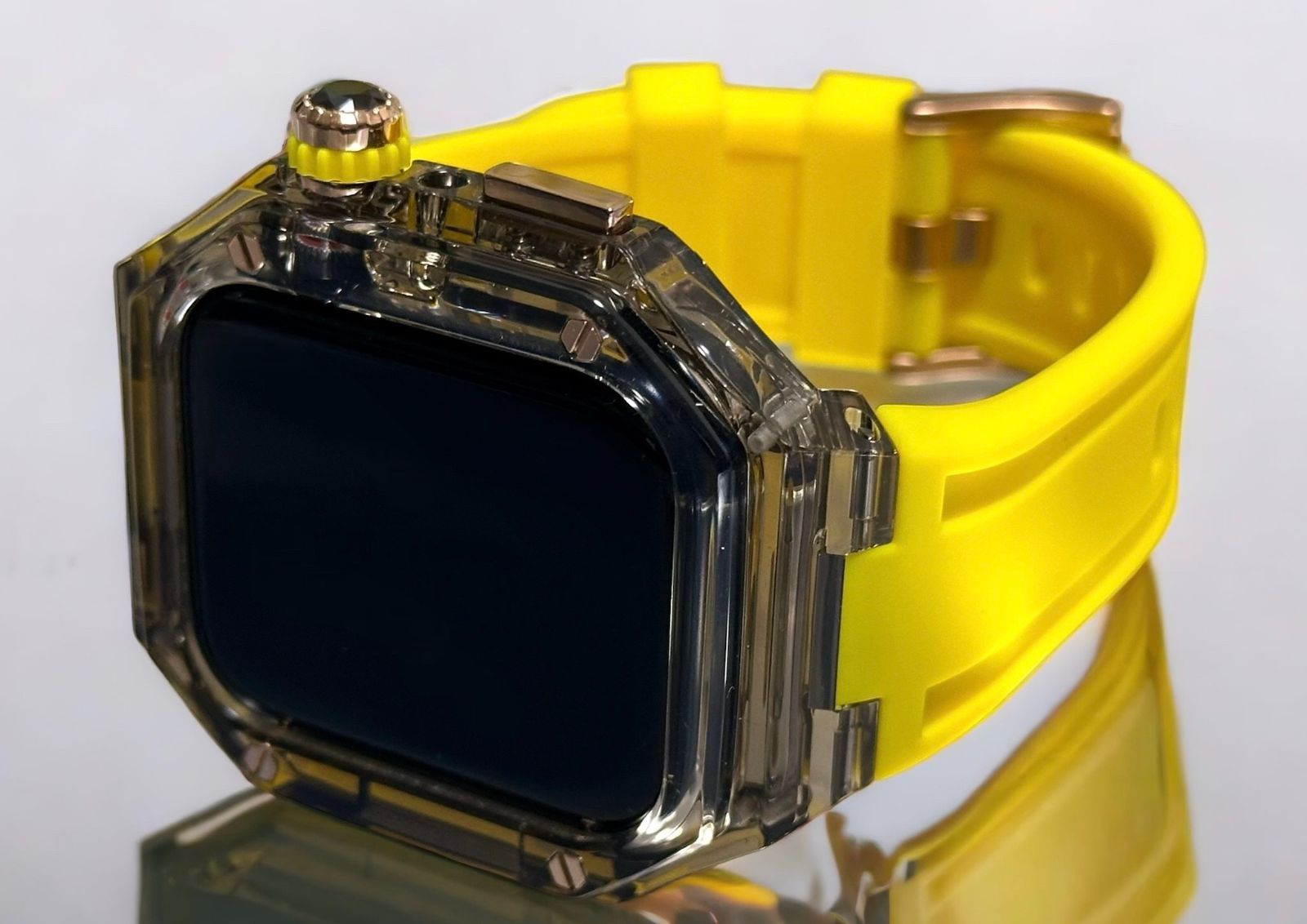 ローズゴールド ブラッククリア イエロー アップルウォッチ ラバーベルト カバー クリア ケース 40 mm 41 44 45 4 5 6 7 8 9 se スポーツ メンズ レディース 4スクリュー Apple Watch バンド