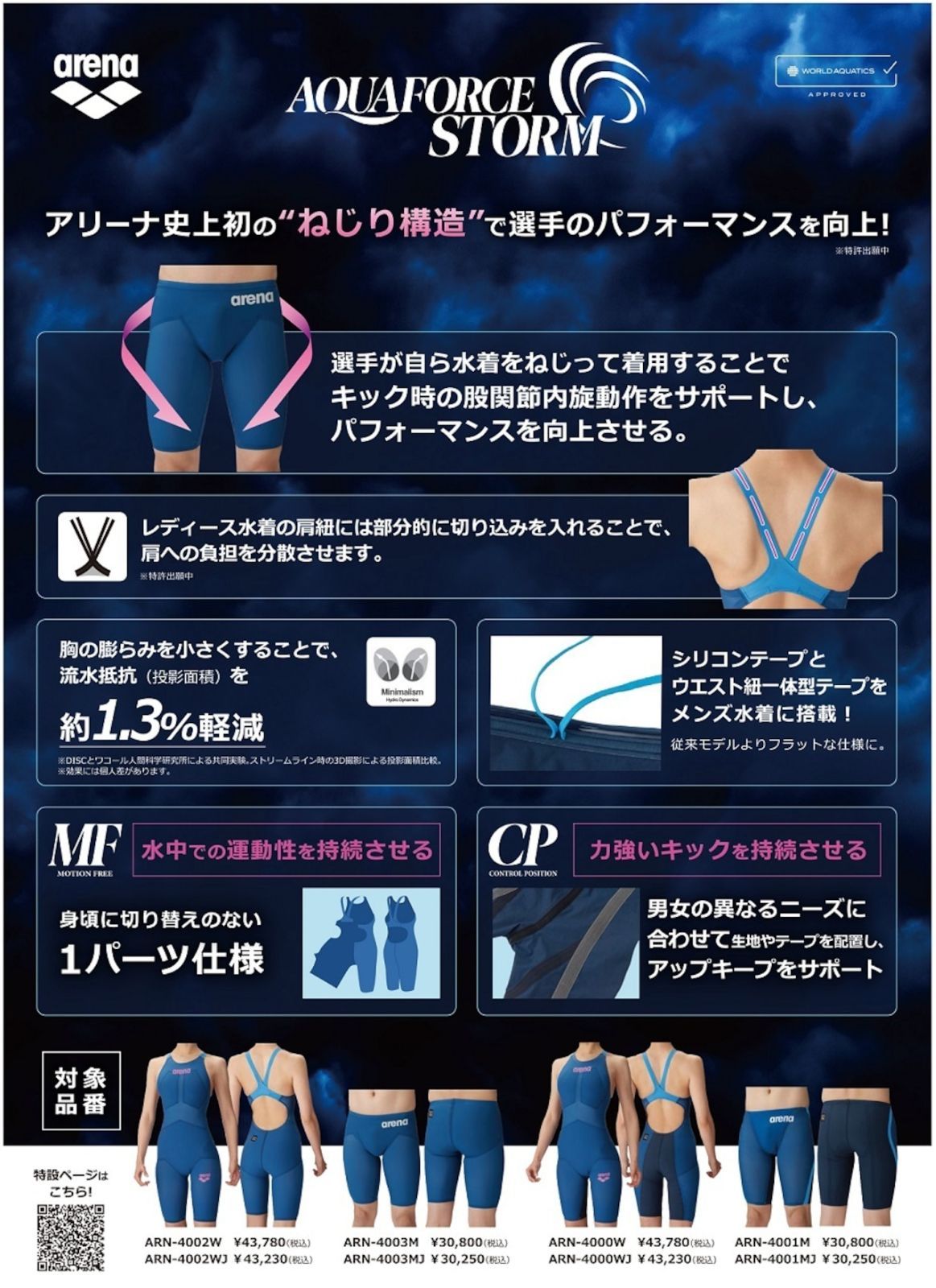 新色 STORM メンズ MF arena アクアフォースストームMF レーシングスパッツ レース水着 水泳 競泳