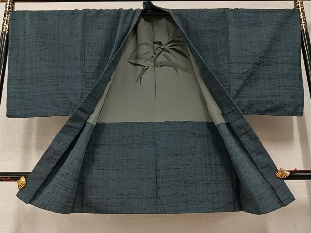 平和屋着物 男性 紬 アンサンブル 色無地 錆鉄御納戸色 正絹 ph