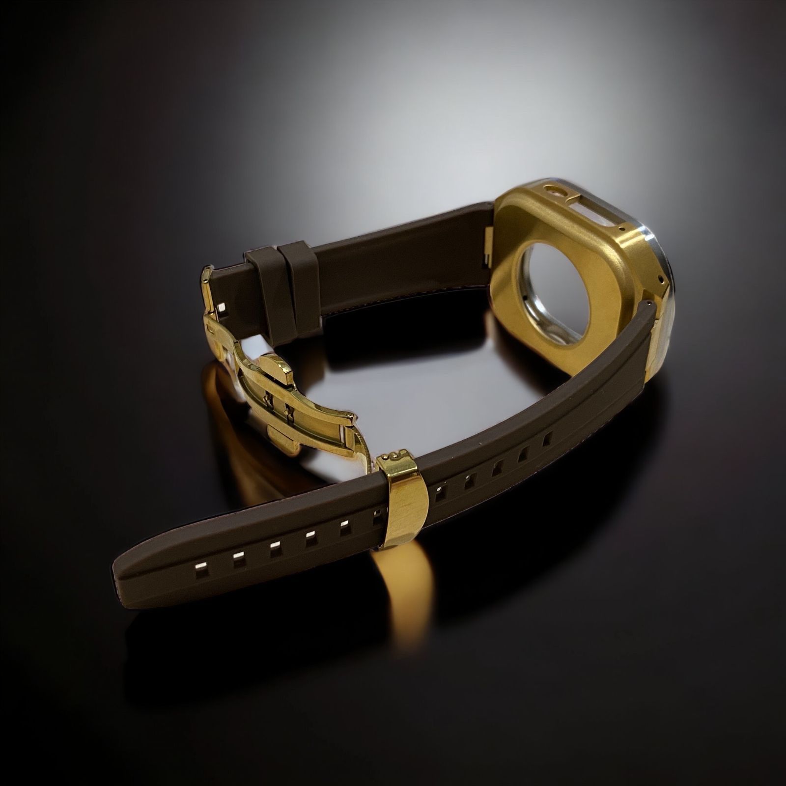 ブラウン×シルバーゴールド 49 mm apple watch ultraアップルウォッチラバーメタルカバーセット ウルトラ 49ミリ用 カスタム ultra 1 2 3