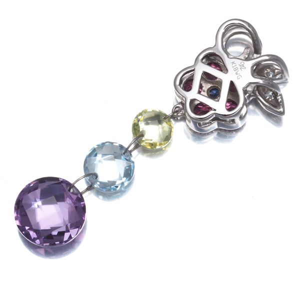 笠原真寿美 ペンダントトップ アメジスト トパーズ ガーネット サファイア ダイヤ ダイヤモンド K 18 WG 保証書 177300