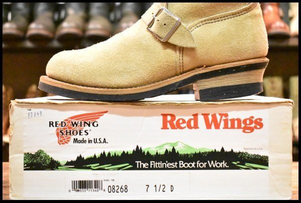 7.5 D PT 91刺繍 レッドウィング 8268 スエード エンジニア タン ラフアウト スチールトゥ ベージュ ブーツ redwing FJ 303