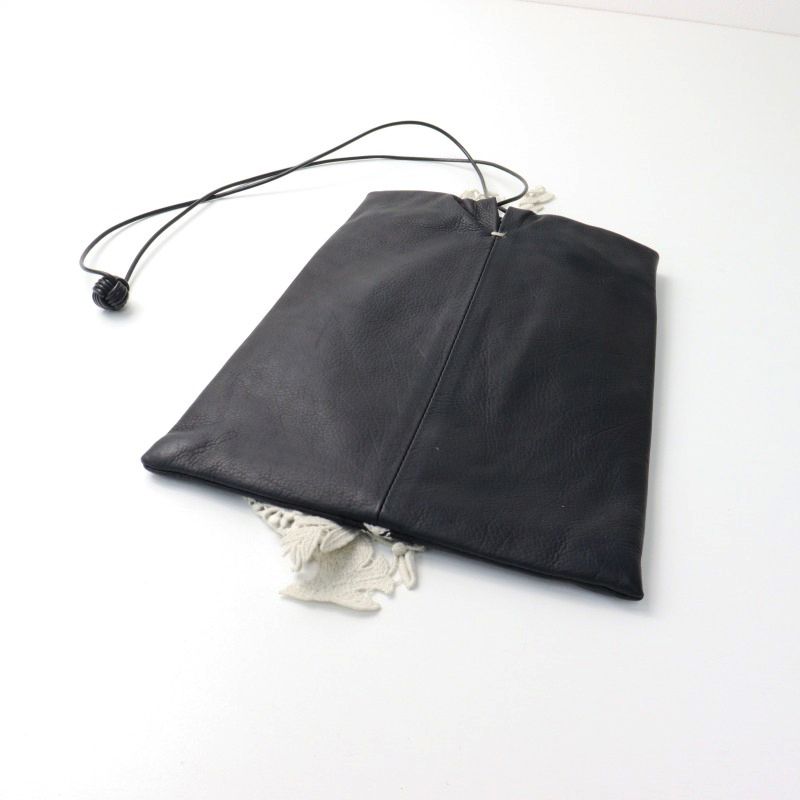 ミナペルホネン mina perhonen forest parade 刺繍レース カーフレザー 巾着 バッグ ブラック 黒 フォレストパレード