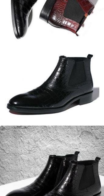 クロコ柄スタイリッシュショートブーツ。