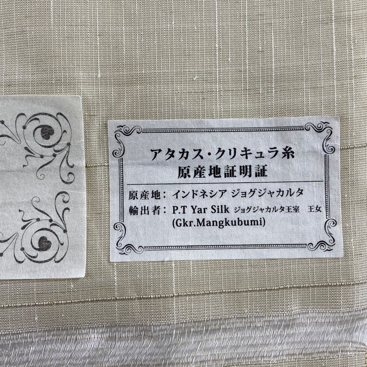 反物 男着物 紬 野蚕 アタカス クリキュラ 証紙 インドネシア ベージュ 正絹