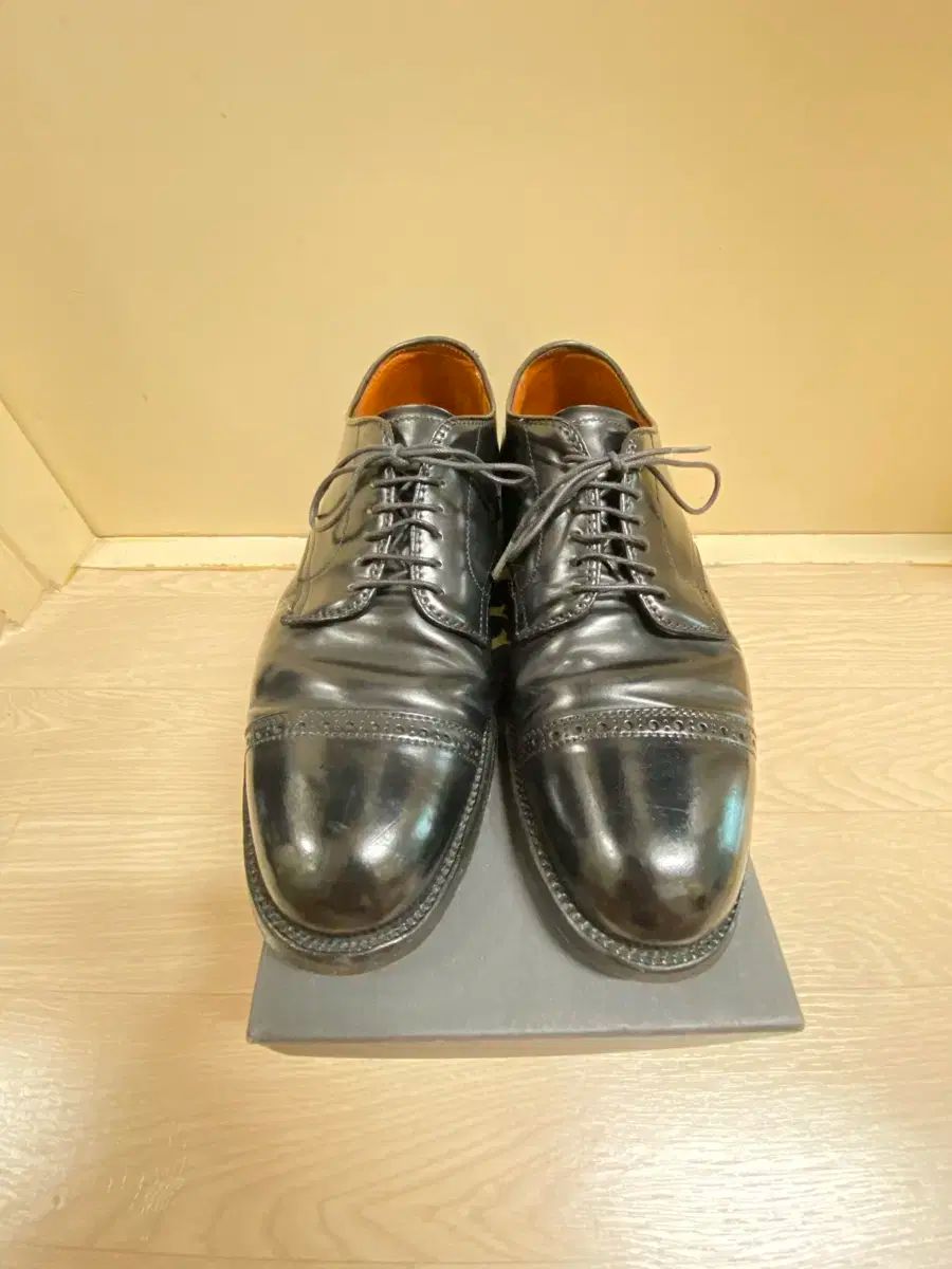 これはオールデンサンマビョルジュ A7503 コードバンブラッククォーターブローグキャプトダービーです。見ての通り全体的に状態は良好です。ほのかな光沢感のあるブラックカラーは高級感があります。他に質問がない場合は、すぐに安全な支払いを行ってください!