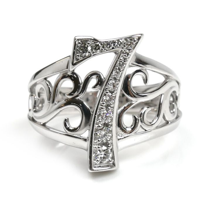 ゆきざき K 18 WG ホワイトゴールド NOMBLE ナンバーリング 7 リング 指輪 Y.NOMBRE.1.9.7.S ダイヤモンド0.23 ct 14号 8.8 g ユニセックス
