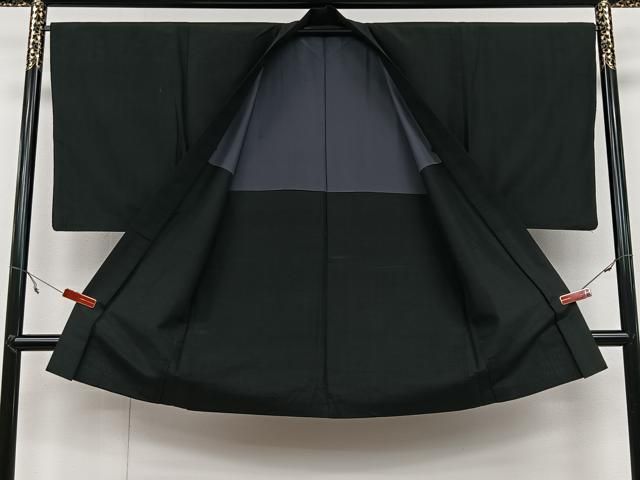 平和屋着物#男性 長羽織 紬地 霞文 黒地 正絹 id