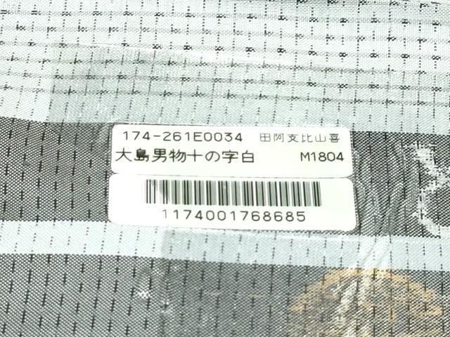 上 男性 本場大島紬 白大島 単衣 キングサイズ 十の字 徳田幸夫作 やまと誂製 証紙付き s 5