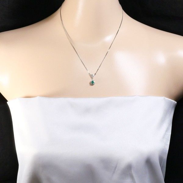 PT 850 ネックレス necklace エメラルド 0.20 ダイヤ 0.33 総重量約4.7 g 約40 cm