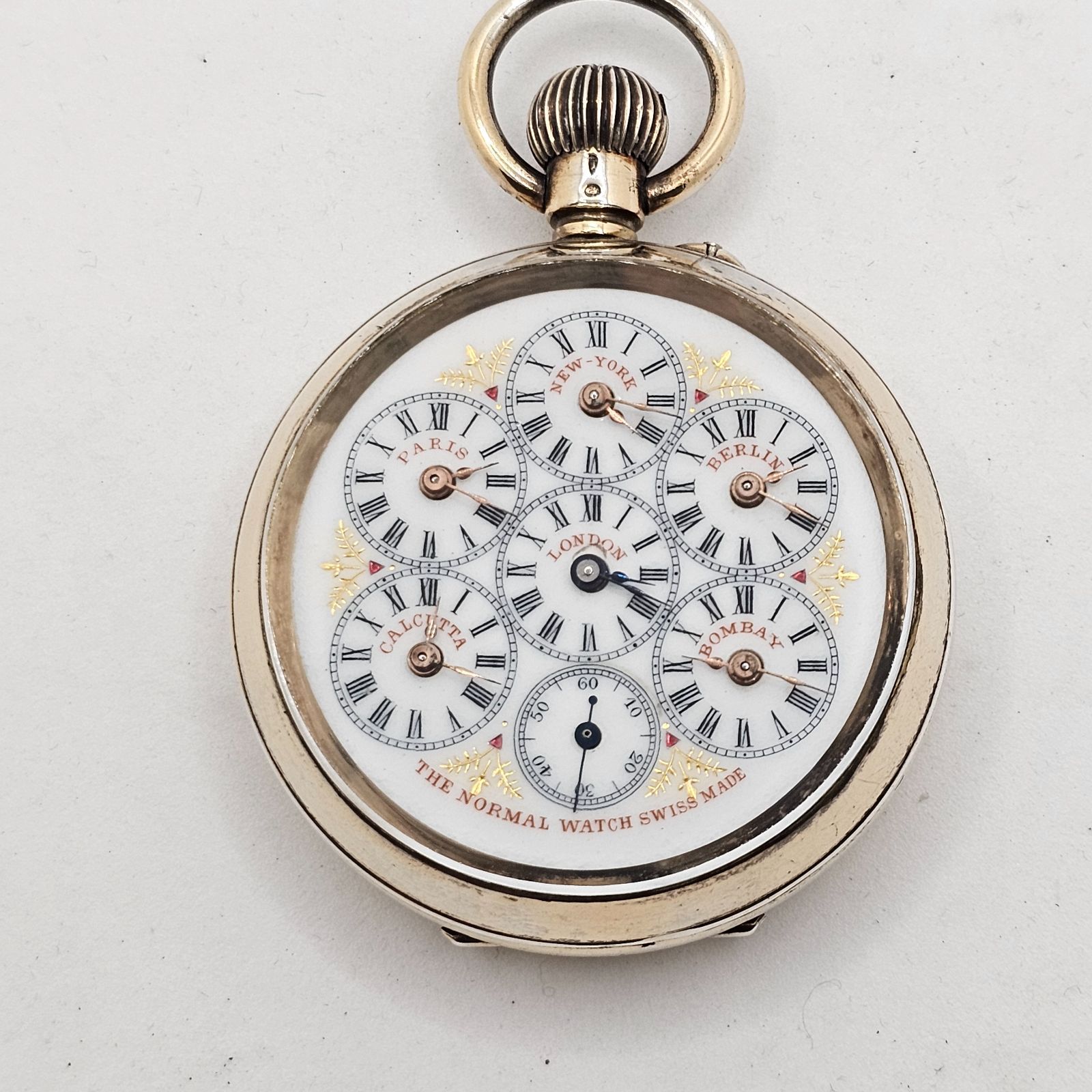 アンティークコレクター垂涎の、非常に珍しい**スイス製の手巻き世界時計**です。