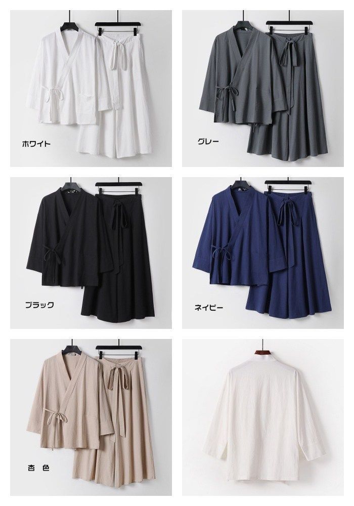 甚平 メンズ 即 OK 大きいサイズ 羽織り 夏 セットアップ 紐付き 七分丈袖 綿麻風 ゆったり 浴衣 上下セット パジャマ ルームウェア 夏祭り お祭り 花火大会 通気性 無地 涼しい zhishihy 06