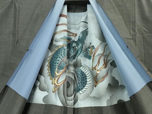 平和屋着物 上 男性 本場大島紬 アンサンブル キングサイズ 長羽織 羽裏 龍 亀甲柄 kh 5