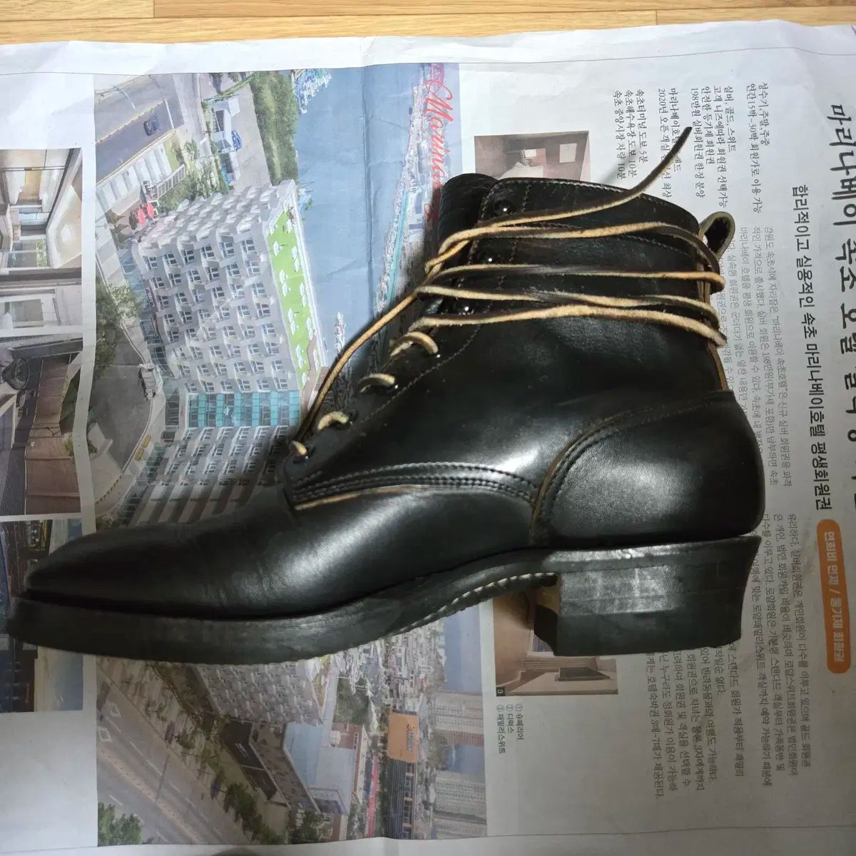 ホースレザー素材で製作されたブーツで、現在チャームの一部進行中です。詳しい状態は写真をご参照ください。