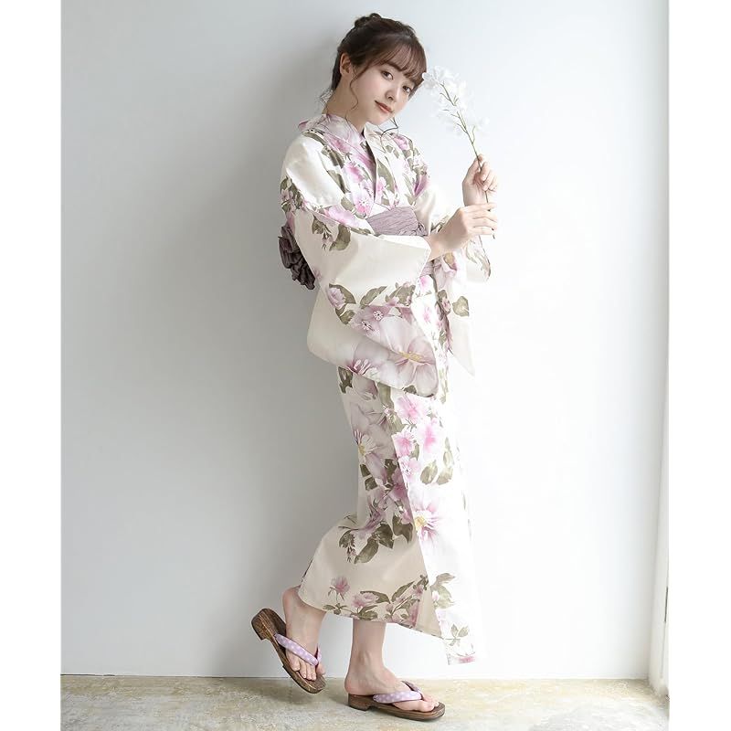 在庫 KYOETSU キョウエツ 浴衣セット 変わり織 生成り 二部式 4点セット 浴衣 兵児帯 肌着 下駄 レディース AB 10.メロウモーブ フリーサイズ 0