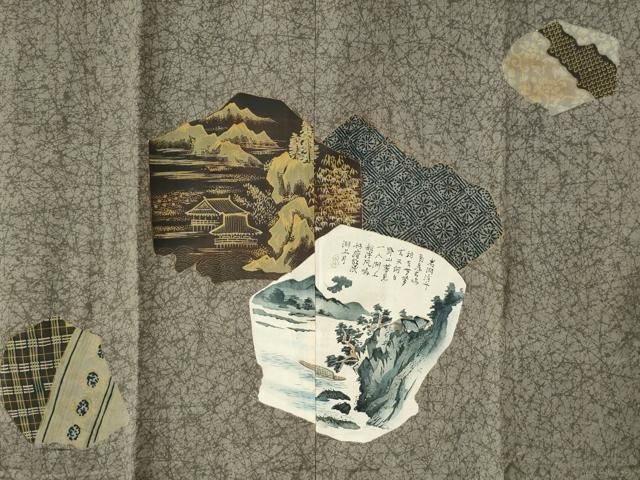 平和屋着物 男性 長襦袢 袷 手描き 風景文 金彩 正絹 yc