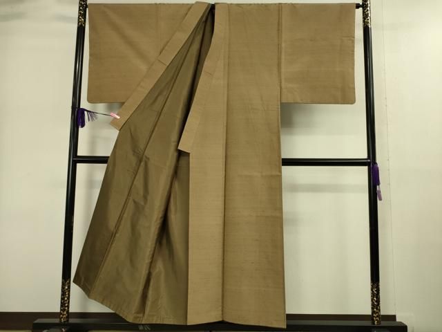 上 男性 紬 アンサンブル キングサイズ 長羽織 色無地 朽葉色 kh 5