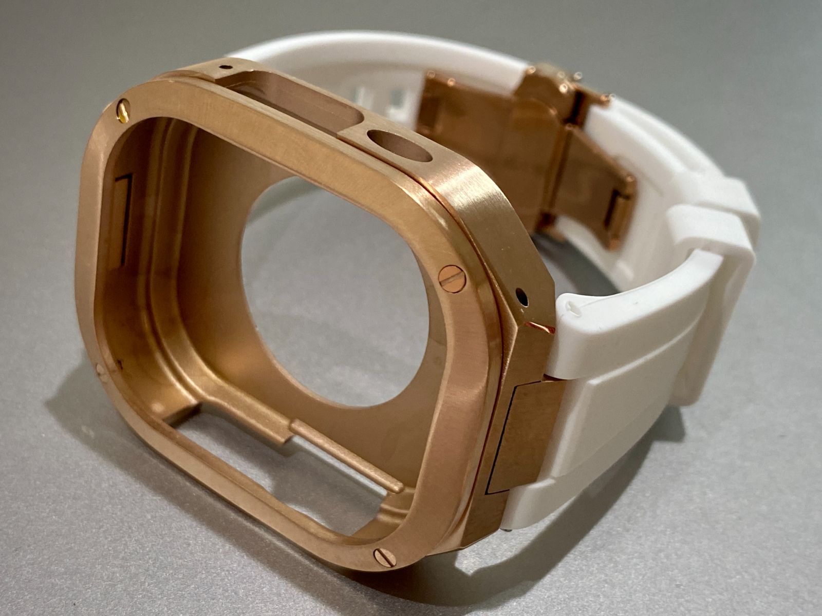 ローズゴールド×ホワイト アップルウォッチバンド ラバーベルト カバー ステンレス Apple Watch ケース 49 mm ウルトラ ultra スポーツ メンズ レディース キラキラ