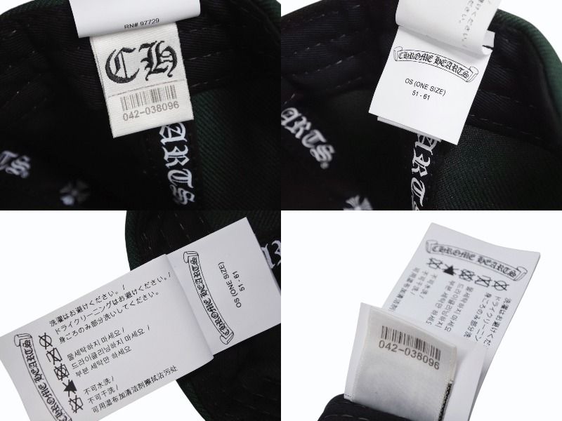 CHROME HEARTS クロムハーツ HAT 6 PANEL CAP ON FIELD BSBL CH刺繍 ベースボールキャップ ONE SIZE グリーン 4 b 008716