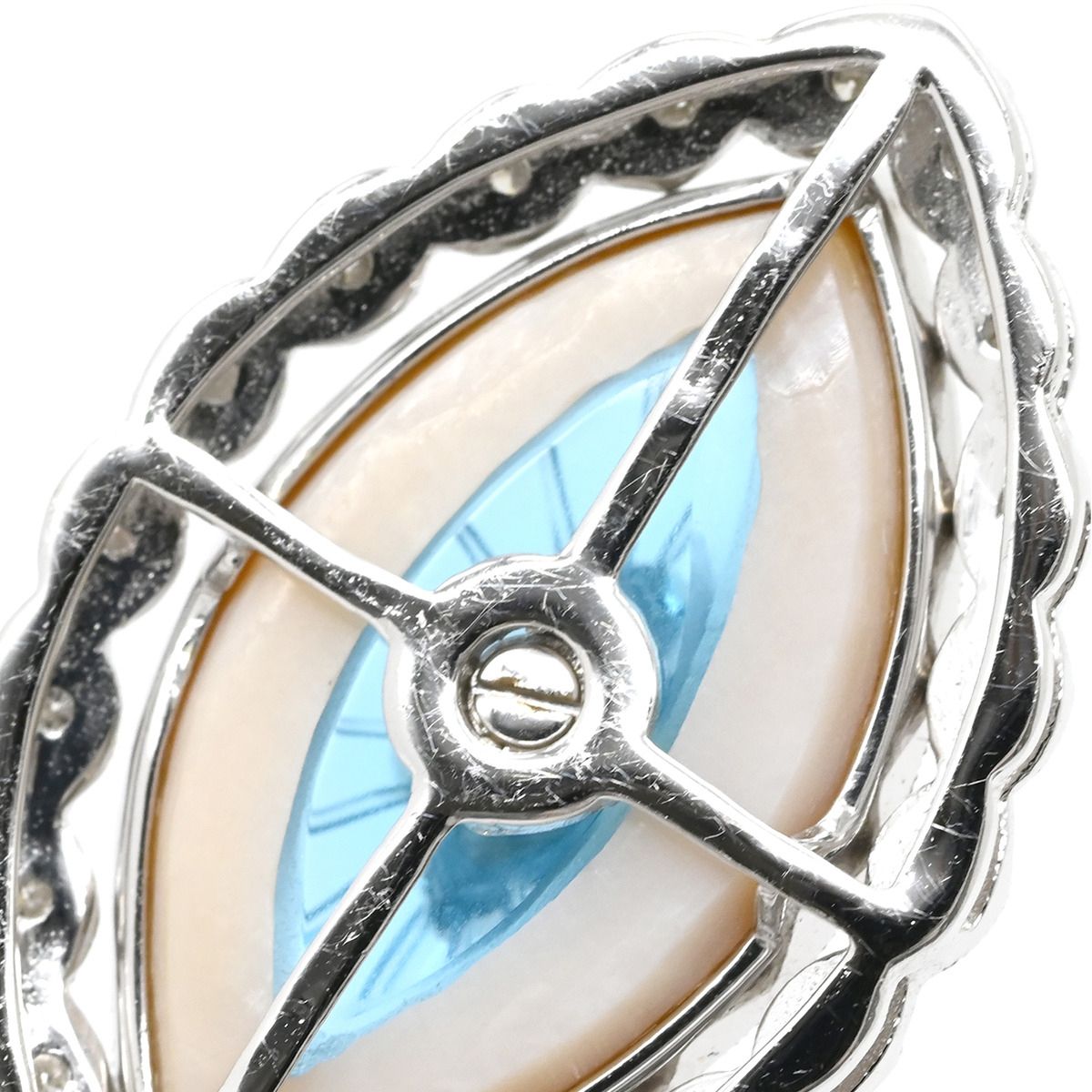 ペンダントトップ ブルートパーズ シェル ダイヤ K 18 WG ダイヤモンド ホワイトゴールド 青 ブルー 彫刻 ネックレストップ