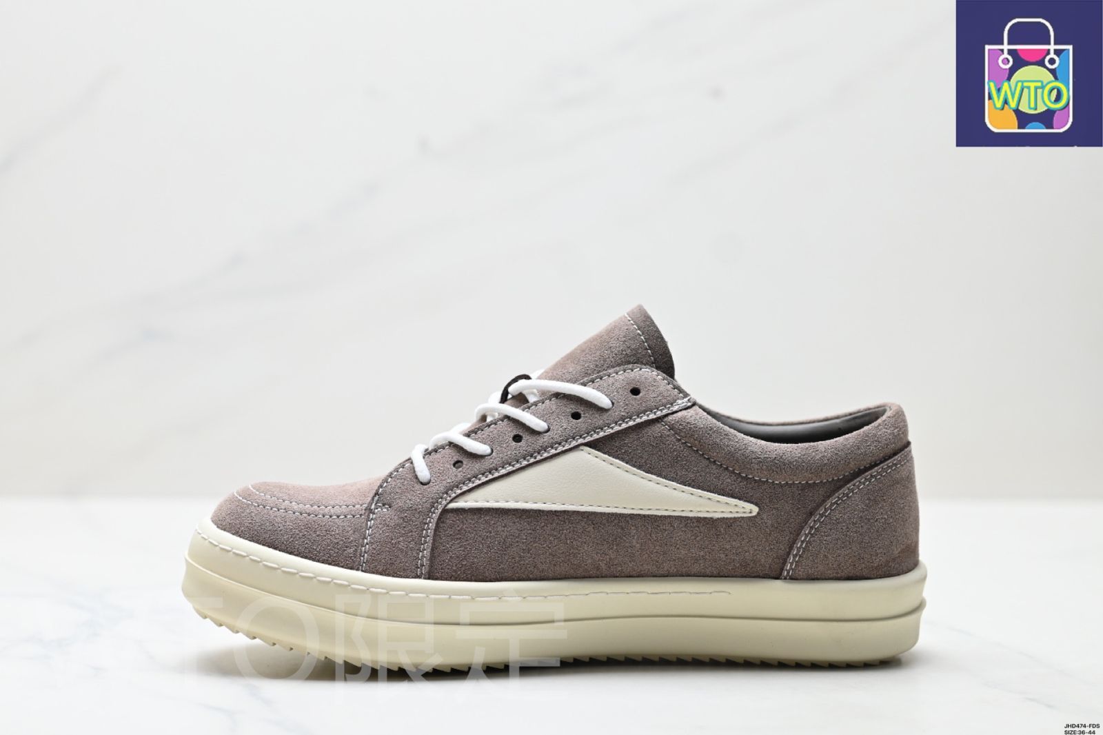 Rick Owens リック オウェンス RO Hollywood 小牛皮 丸頭 レース式 ロートップ スニーカー-WTO輸入1