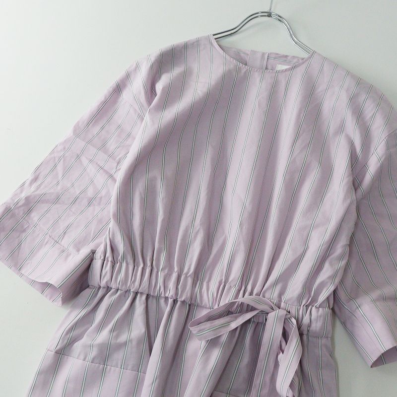 エブール ebure コットン ストライプワンピース 36 ピンク ブロード ウエストリボン ドレス