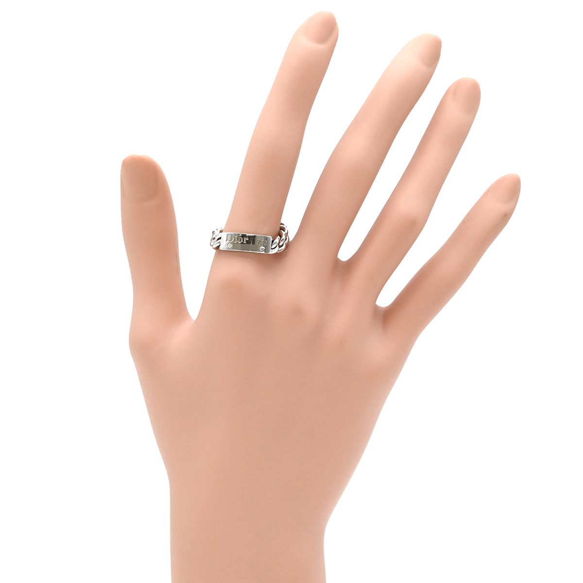 クリスチャン ディオール Christian Dior リング 指輪 ゴルメット ドゥ K 18 WG ホワイトゴールド 59 プレート チェーン 18号