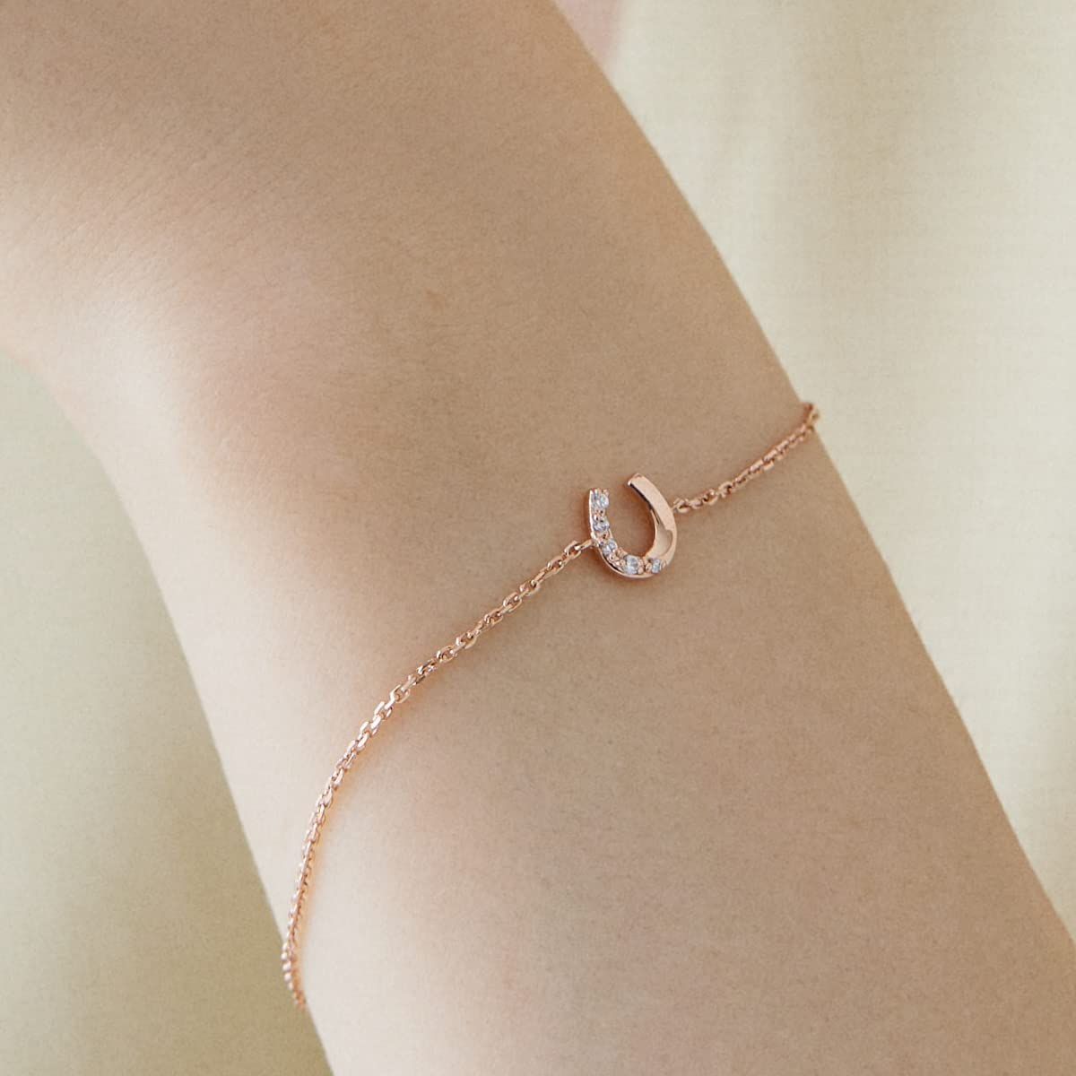 幸運を溜め込むとされる馬蹄モチーフのブレスレット。ライン上に留めたキュービックジルコニアが、腕周りに輝きを添えてくれます。シンプルなデザインはどんなファッションにも合わせやすく、大切な方へのギフトとしてもオススメです。