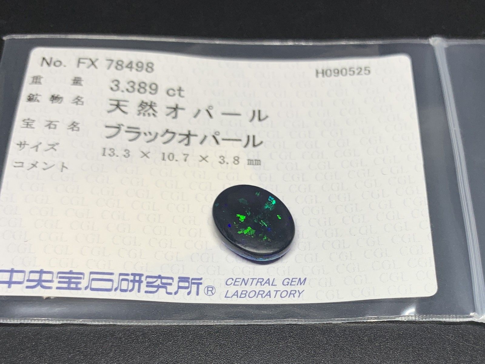 ブラックオパール 両面遊色 天然 3.389 ct 中央宝石ソーティング付き 13.3㎜×10.7㎜×3.8㎜ ルース 裸石 6772 Y