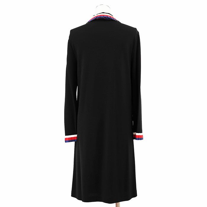 GUCCI グッチ ワンピース リボン シェリーライン GG ロゴ インターロッキング フェイクパールボタン レーヨンジャージー ストレッチ ガーメント ハンガー付属 レディース サイズ XL ブラック トリコロール 黒 イタリア製