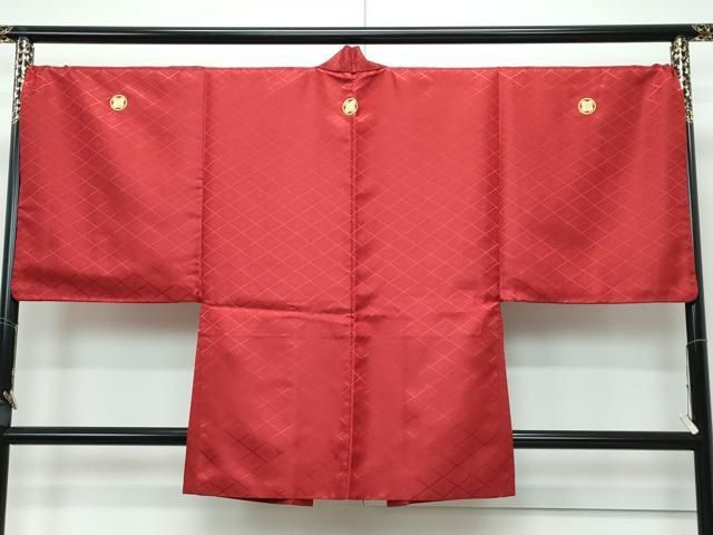 平和屋着物 上 男性 色無地 紋付き羽織セット 紅海老茶色地 花菱地紋 舞台衣装 洗える着物 s 5