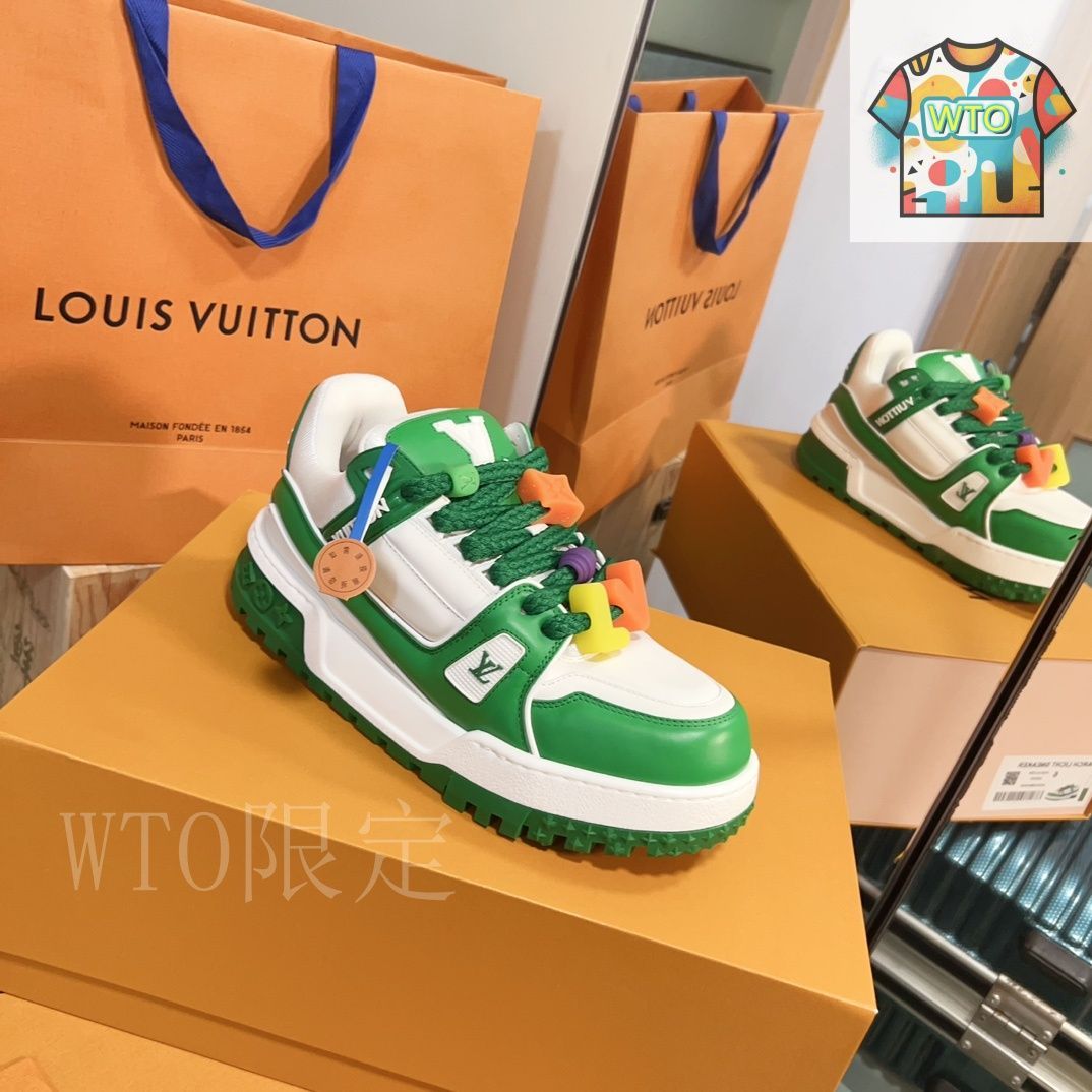 この商品の価格は 25000すぐに購入・お支払いいただき、注文画面でメッセージをお願いします。 この Louis Vuitton LV Trainer 限定モデルは、カップルで着用できる「パンシューズ」として注目を集めるスニーカーです。単色の??性を打破した多彩な配色が若々しい印象を与え、愛らしい「太ったトレーナー」(通称「発福鞋」)のシルエットが、可愛らしさと高級感を両立させています。最も人気の「胖子鞋型」を採用し、どのカラーバリエーションも個性的で魅力的。35~44 の幅広いサイズ展開で男女問わず快適に着用可能で、「目を閉じて買っても後悔しない」と言われるほどの人気アイテムです。
