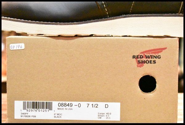 7.5 D ♥ 24年 レッドウィング 8849 アイリッシュセッター ブラックプレーリー モックトゥ 編み上げ 茶芯 ブーツ GP 196