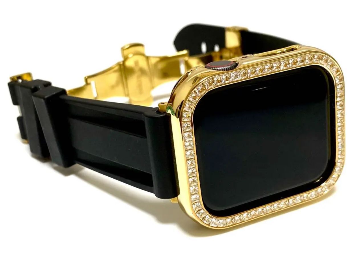 ゴールド×ブラックAppleWatchキラキラカバーアップルウォッチラバーバンド
