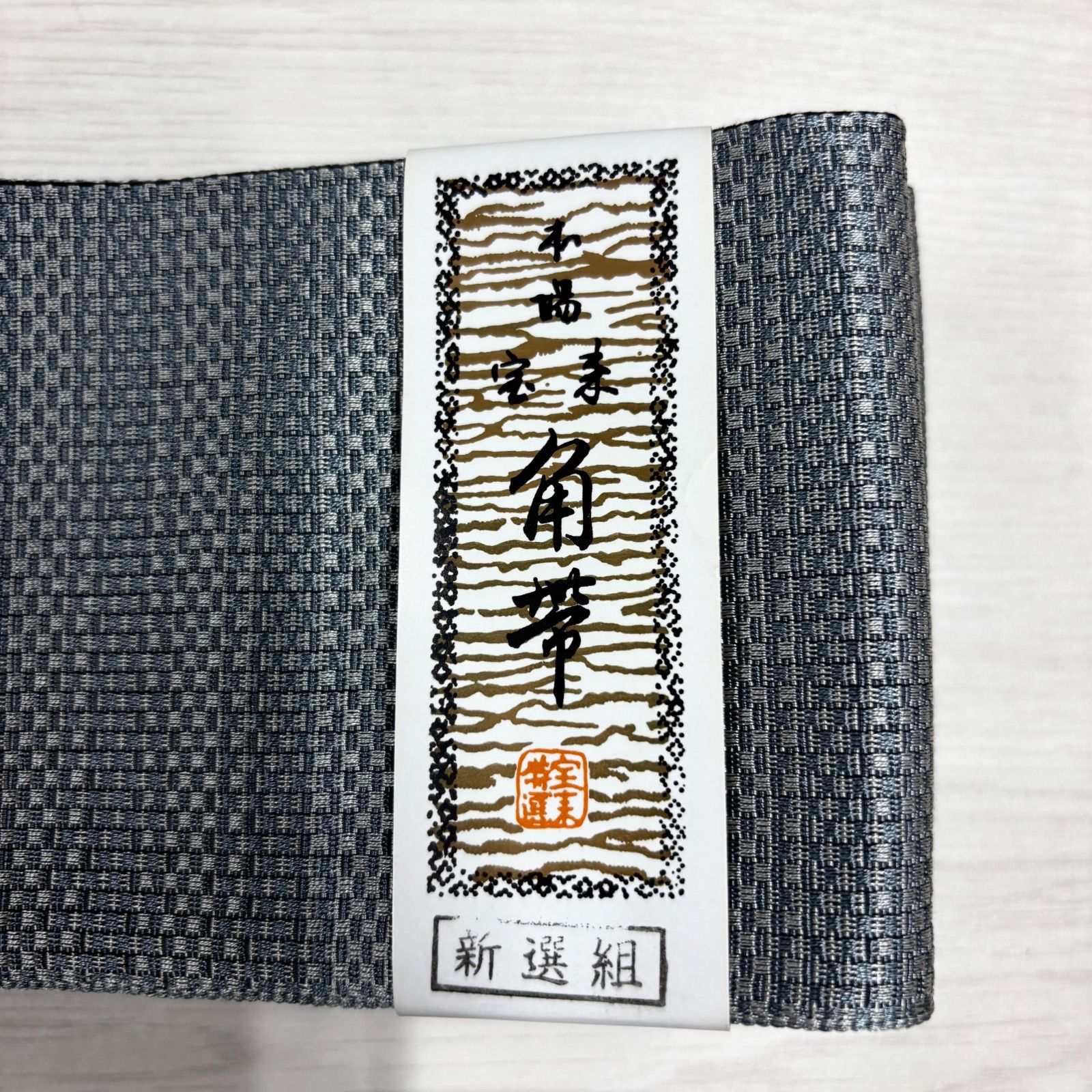 美品 新品未使用 匿名配送 男物高級角帯 帯 本場宝来織 新選組 グレー 格子
