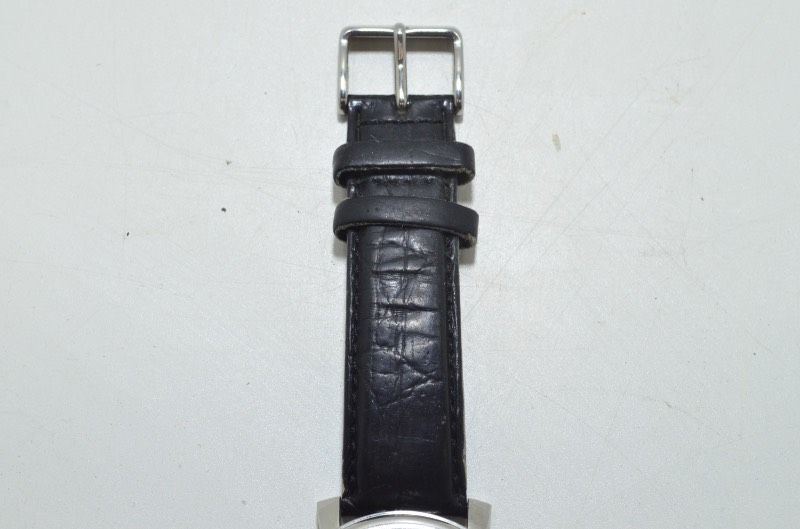 ・高級感あるステンレスケースと本革ベルトの組み合わせ。