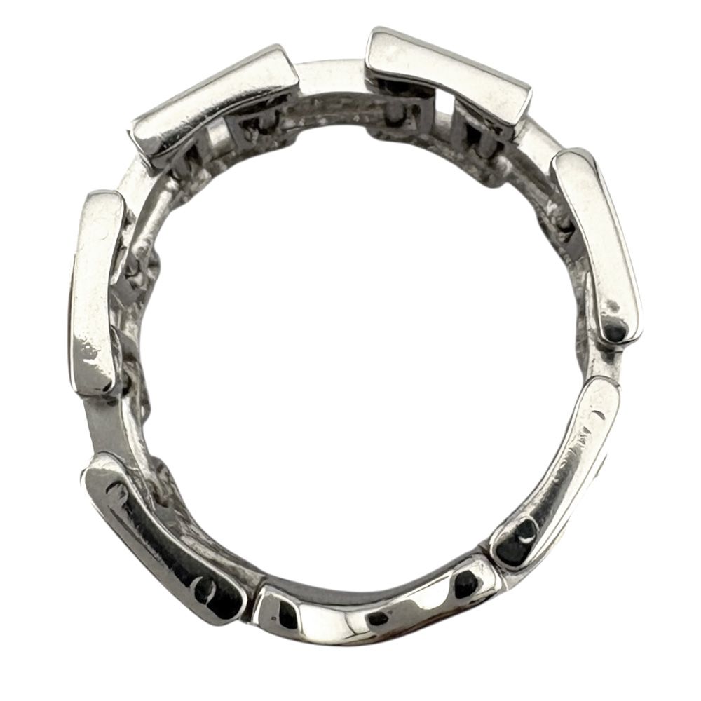 モダンで構築的なデザインが目を引く、Pt950プラチナのリングです。パヴェダイヤモンドが、洗練された輝きを放ちます。指元に確かな存在感とリュクスな印象を与える、大人のためのジュエリーです。