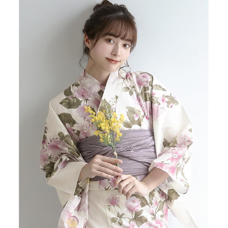 在庫 KYOETSU キョウエツ 浴衣セット 変わり織 生成り 二部式 4点セット 浴衣 兵児帯 肌着 下駄 レディース AB 10.メロウモーブ フリーサイズ 0