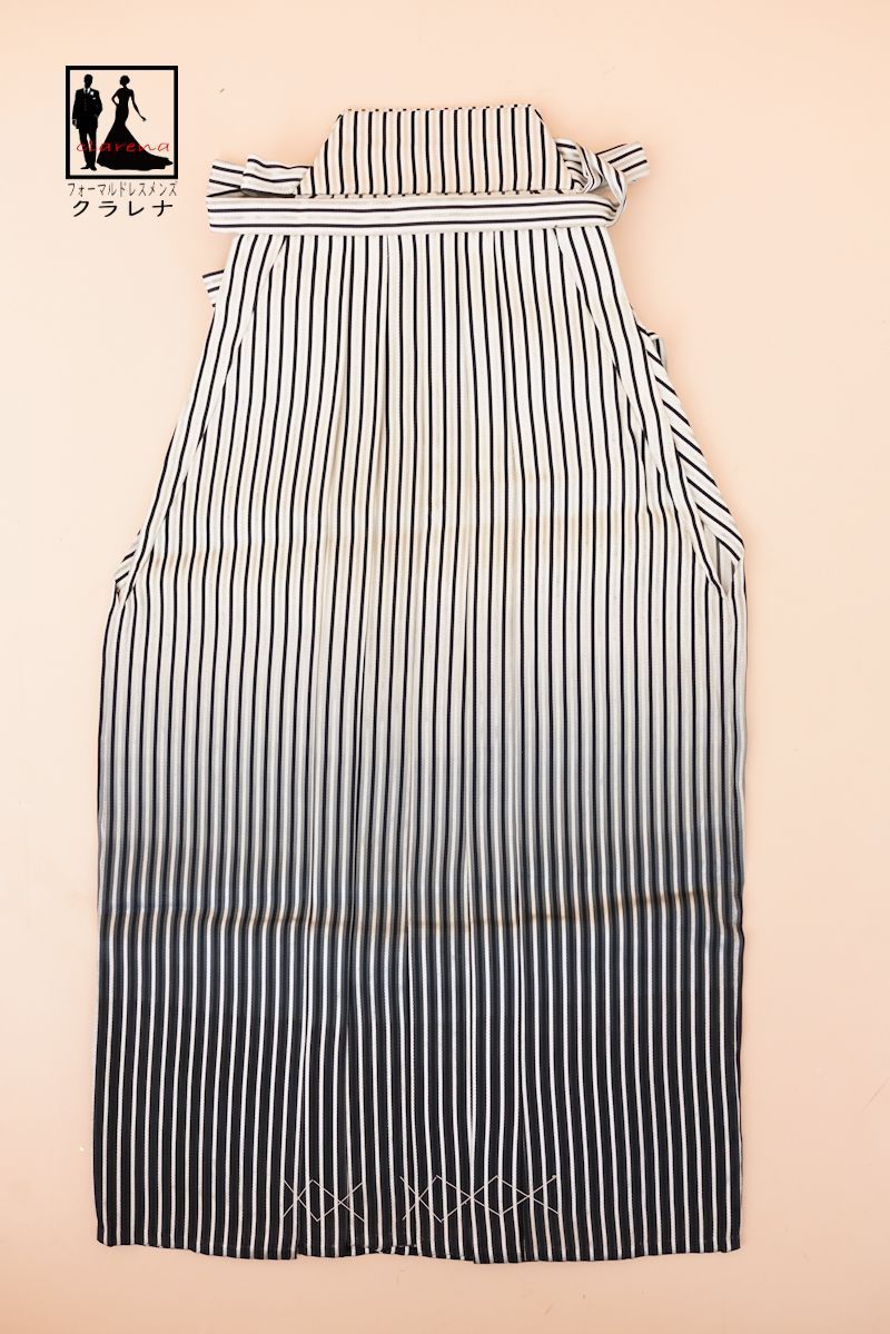 袴は、化繊で、白に黒とシルバー、濃グレーのぼかし入り縞柄。目立つ難はありません。