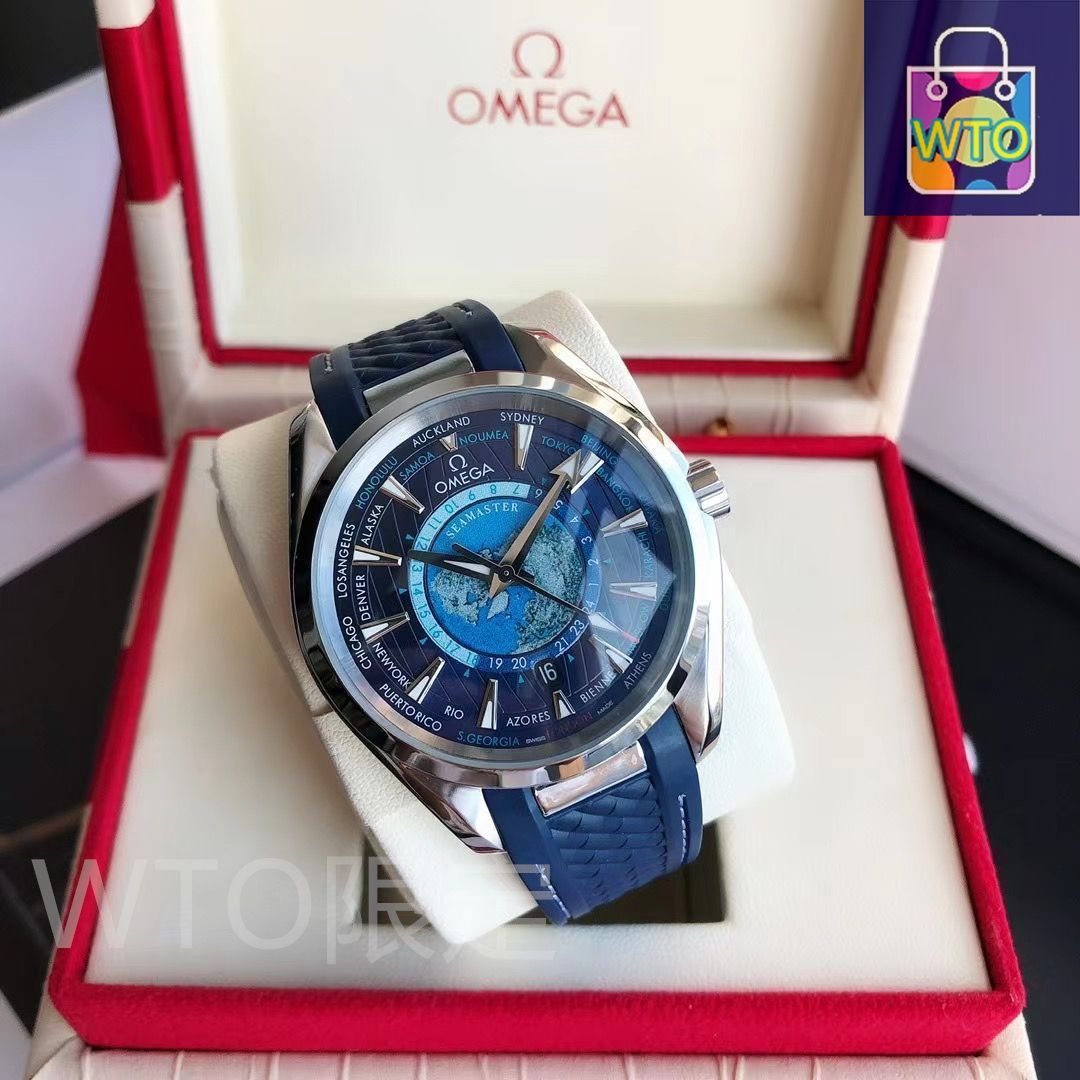 46今すぐ へようこそ! オメガ シーマスター アクアテラ GMT ワールドタイマー マスタークロノメーター ブルー49| | --WTO輸入2