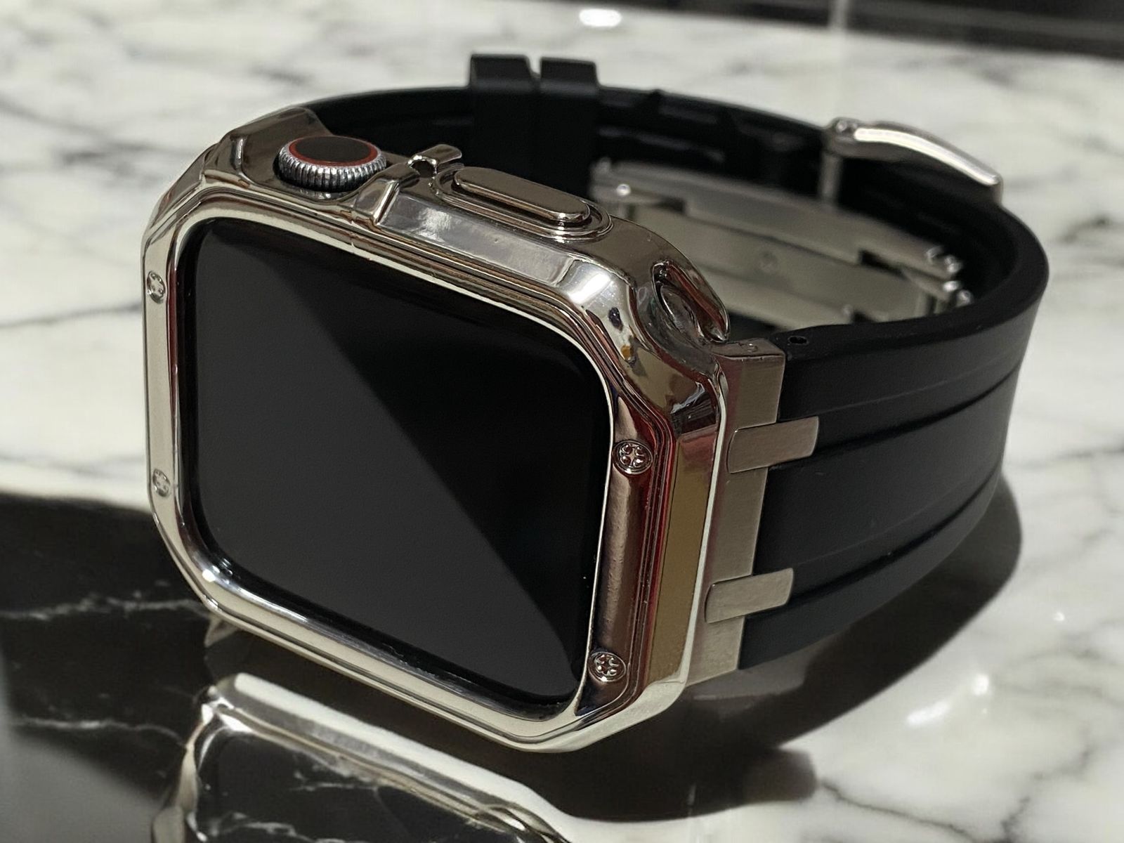 Apple Watch用に、ステンレス、セラミック、ラバー、レザーのバンドや、メタルカスタムなど、豊富なベルトとキラキラカバーケースを取り揃えています。さらに、ウルトラ49mmを使用される方のために、ウルトラ専用オプションもご用意しています。
